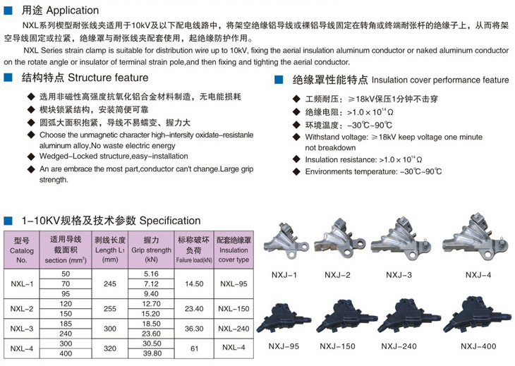 NXL系列楔型鋁合金耐張線夾及絕緣罩 |